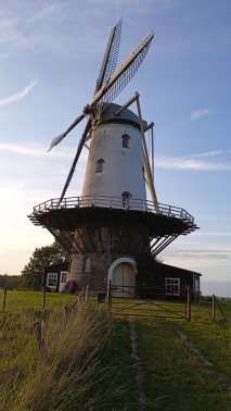 HINWEIS: Verwenden Sie hier nicht die von Google Maps vorgeschlagene Route, sondern gehen Sie durch den Zaun (Auf der Stadtmauer erhebt sich eine Mühle direkt im Wind / siehe Fotos) an der Windmühle de Koe. Folgen Sie dem Weg über diesen Deich bis zur Koordinate (orangefarbener Tropfen).