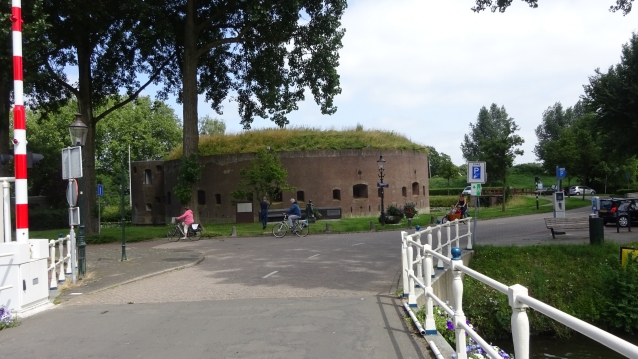 Bij Bastion de Nieuwe Agtkant kunt u letterlijk zelf de Waterlinie beleven. In de eeuwenoude verdedigingswal is een opening gemaakt zodat de bezoeker door de oude wal heen kan lopen en goed de dikte van zo’n aarden wal beleeft en de verschillen in hoogte kan zien tussen de 17de – en 19de eeuwse stadswal. En het is een mooie manier om bij het water te komen dat om de stad heen loopt! De wal is onderdeel van Bastion Nieuw Achtkant, dat tegelijk met het maken van deze doorsnede, in 2011, geheel gereconstrueerd is naar de eind 19de-eeuwse situatie.