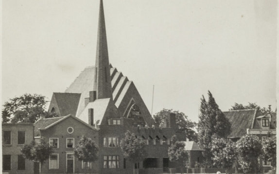 Veertig jaar lang bepaalde deze imposante kerk met haar expressionistische architectuur, een meesterwerk van architect Reitsma uit het interbellum, mede het stadsbeeld van Weesp. Bij de grote stadsbrand van 3 april 1968, die in een deel van de binnenstad woedde, vatte ook de kerk vlam. De pastorie en diaconie bleven als door een wonder gespaard. Van de kerk bleef een geblakerde ruïne over