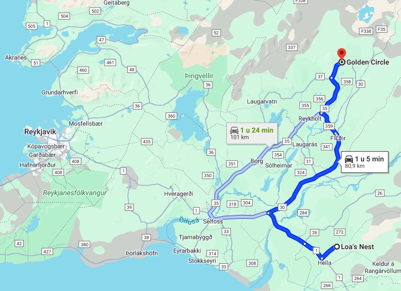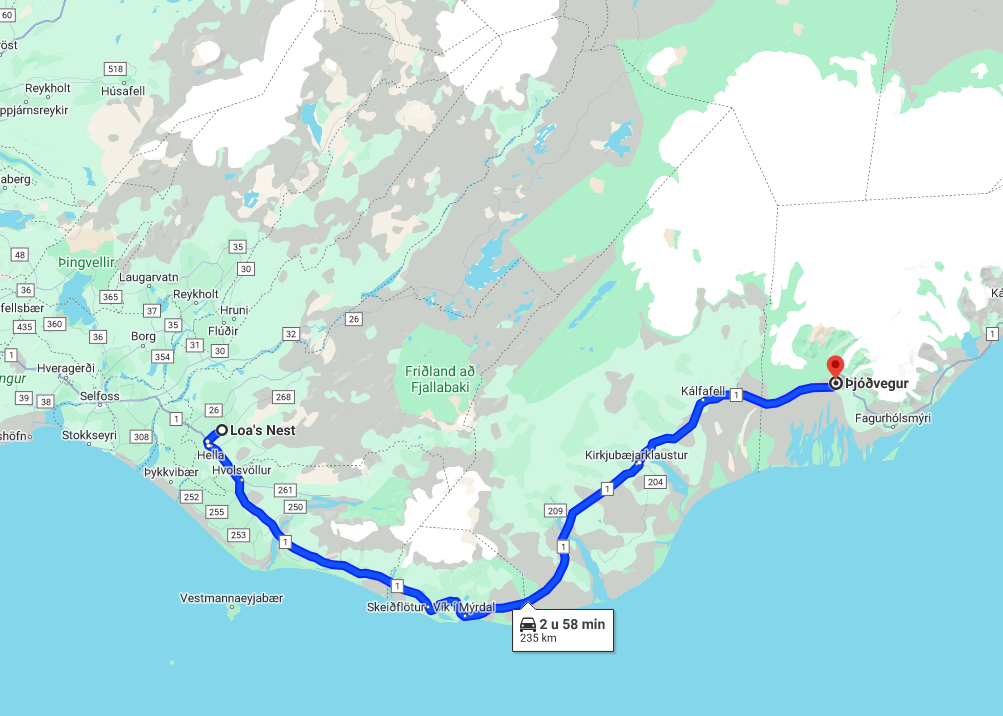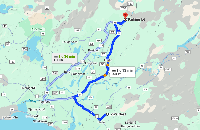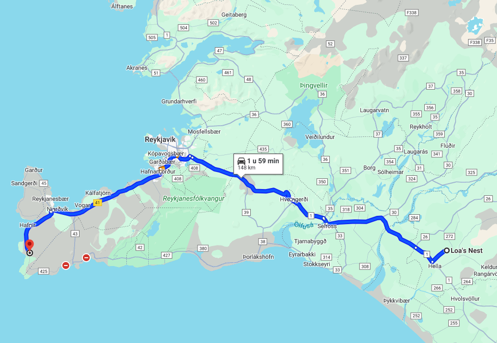 Een dag na de start van de uitbarsting op Reykjanes is er door de autoriteiten een pad uitgestippeld vanaf Suðurstrandarvegar (road 427) naar de plek van de eruptie bij Litli Hrutúr. Langs de weg is het mogelijk is om auto’s te parkeren. Het pad heeft de naam Meradalaleið gekregen. Een geheel nieuwe route, die aan de zuid-oost kant van de lavavelden uit 2021 (Fagradalsfjall) en 2022 (Meradalir) ligt. Het is een behoorlijk lange wandeling naar het viewpoint: 20 kilometer in totaal (heen en terug). Het grootste deel van de wandeling is over een bestaande off road. Wel wordt er gewaarschuwd om ALTIJD voor je begint aan de wandeling de condities te checken op Safetravel.is.