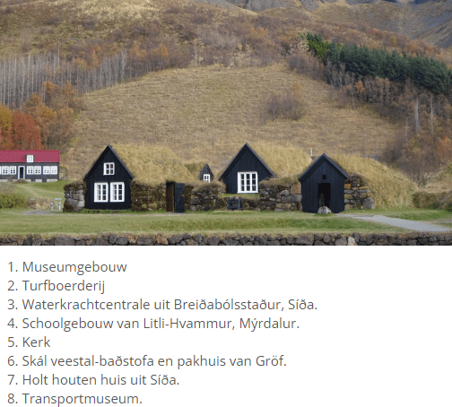 Het Openluchtmuseum heeft een grote site met voorbeelden uit vele perioden uit de IJslandse architectuurgeschiedenis.