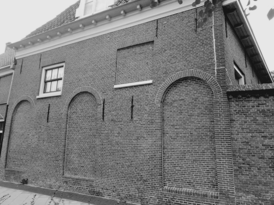 On the corner of Gasthuisstraat and Middenstraat was the dining room. The Zuidvleugel (Schoolsteeg) is from 1650. The Oostvleugel (Middenstraat) was renovated in 1822. On the ground floor women’s dormitory. On 1st floor men’s dormitory. The corner Schoolsteeg-Nieuwstraat originally housed the bakery