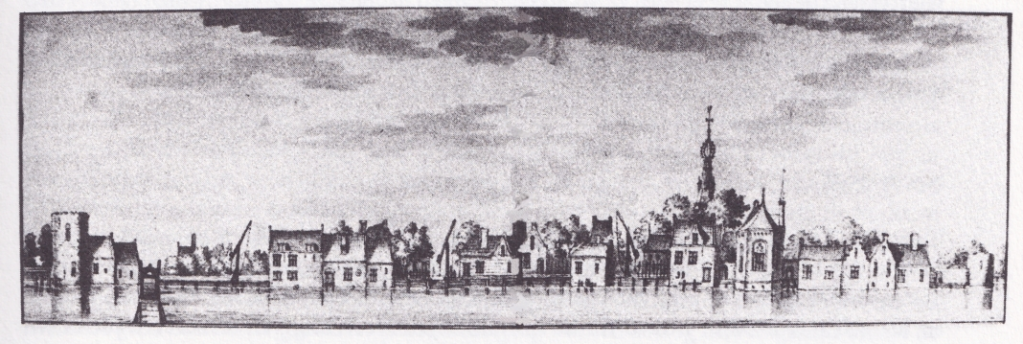 In the middle of the picture below (at the V) you will also see the first town hall (Regthuys) of Weesp